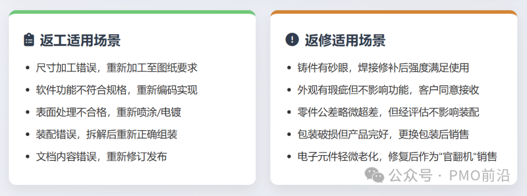 两者不仅处理方式天差地别,对成本、交付和客户关系的影响更是千差万别。看完这篇,让你在质量管控中不再踩坑,轻松拿捏取舍之道!定义:对不合格产品所采取的措施,使其完全满足原有的规定要求(即图纸、标准、规范)。核心:返工过程是一个“纠正”过程,处理后,产品就变成了“合格品”,与最初就生产合格的产品在质量和性能上没有区别。