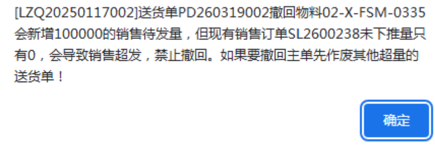 [点晴模切ERP]送货单操作撤单时提示会导致超发,禁止撤回,如何处理?