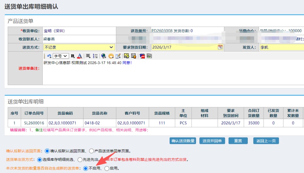 做完对应的操作后,再回到出库页面,将对应功能启用