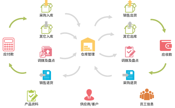 点晴进销存通过四大核心模块,将企业经营的关键数据打通,形成一个完整的管理闭环: