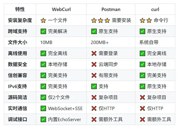 今天给大家安利一个宝藏工具-WebCurl。这玩意儿说出来你可能不信,一个8MB的文件,能干掉Postman大半的活儿,还不用装客户端,双击就能跑。WebCurl是啥WebCurl是一个极致轻量、跨平台、无依赖的HTTP请求转发与调试工具,本质上就是个网页版Postman,但比Postman轻巧100倍!整个项目就俩文...