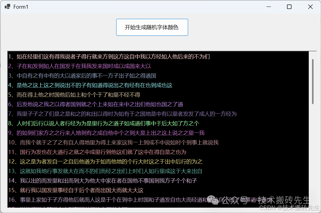 引言利用颜色来更好辨别输出日志信息,好了其他的不多说了,直接奔入主图吧。效果图实现代码///<summary>///输出并设置字体颜色///</summary>///<paramname=msg></param>///<paramname=color></param>privatevoidWiterLog(strin...