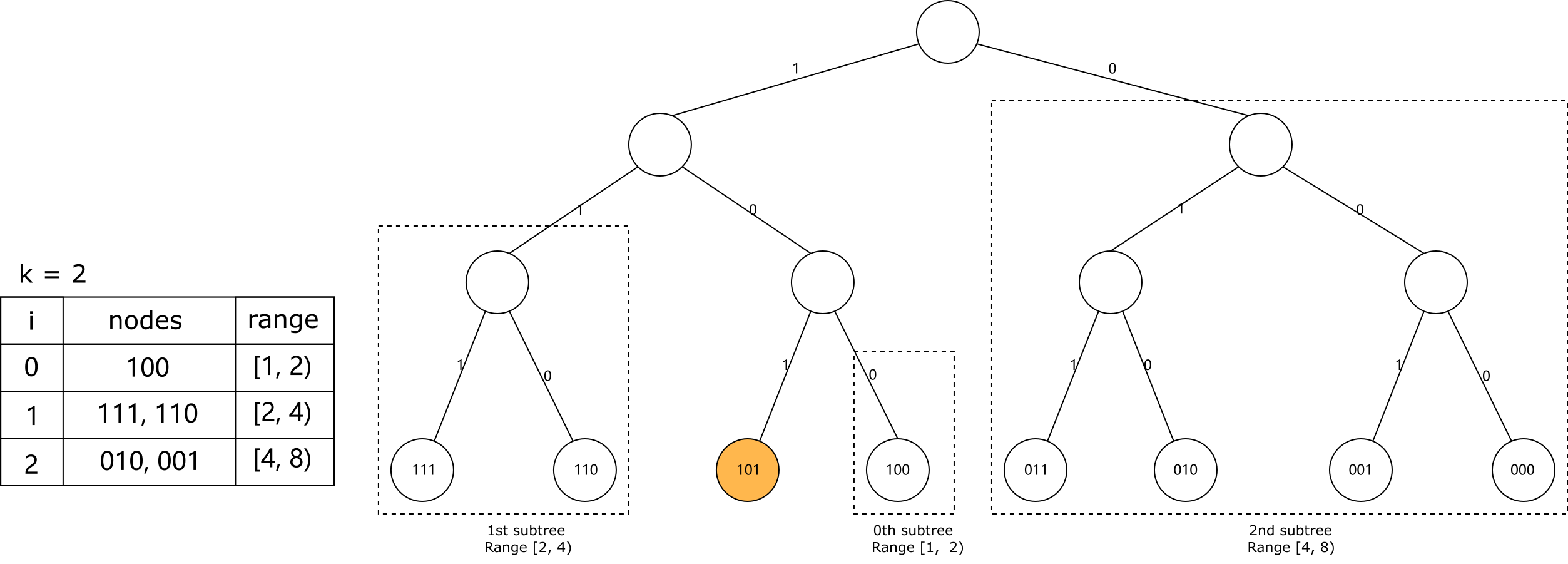 一个 P2P 系统是每个节点都是平等, 自主的一个自我组织的系统, 目的是在避免中心服务的网络环境中共享使用分布式资源. P2P 系统的架构如上图所示. 由于去掉了中心服务器, P2P 系统的稳定性就强很多: 少数几个个节点的失效几乎不会影响整个服务; 节点多为用户提供, 可以做到 “野火烧不尽, 春风吹又生”. 即使有人想恶意破坏, 也无法对整个系统造成有效打击. 2.2 朴素的 P2P 网络P2P 网络需要解决的一个最重要的问题就是, 如何知道用户请求的资源位于哪个节点上. 在第一代 P2P 网络中, 人们设置了一台中央服务器来管理资源所处的位置. 当一个用户想要发布资源, 他需要告诉中央服务器它发布的资源信息和自己的节点信息; 当其他用户请求资源的时候, 需要先请求中央服务器以获取资源发布者的节点信息, 再向资源发布者请求资源. 这种 P2P 网络的好处是效率高, 只需要请求一次中央服务器就可以发布或获取资源. 然而它的缺点也很明显: 中央服务器是这个网络系统最脆弱的地方, 它需要存储所有资源的信息, 处理所有节点的请求; 一旦中央服务器失效, 整个网络就无法使用. 早期的另外一种 P2P 网络采取了不同的策略, 它不设置中央服务器; 当用户请求资源时, 它会请求它所有的邻接节点, 邻接节点再依次请求各自的邻接节点, 并使用一些策略防止重复请求, 直到找到拥有资源的节点. 也就是说, 这是一种泛洪搜索(Flooding Search). 这种 P2P 网络去除了中央服务器, 它的稳定性就强多了. 然而它太慢了. 一次查找可能会产生大量的请求, 可能会有大量的节点卷入其中. 一旦整个系统中的的节点过多, 性能就会变得很差. 2.3 分布式哈希表为了解决这些问题, 分布式哈希表应运而生. 在一个有 个节点的分布式哈希表中, 每个节点仅需存储 个其他节点, 查找资源时仅需请求 个节点, 并且无需中央服务器, 是一个完全自组织的系统. 分布式哈希表有很多中实现算法, 第 3 节和第 4 节会详细介绍其中的两种. 这里我们先来看看它们共通的思想. 地址管理首先, 在分布式哈希表中, 每个节点和资源都有一个唯一标识, 通常是一个 160 位整数. 为方便起见, 我们称节点的唯一标识为 ID, 称资源的唯一标识为 Key. 我们可以把一个节点的 IP 地址用 SHA-1 算法哈希得到这个节点的 ID; 同样地, 把一个资源文件用 SHA-1 算法哈希就能得到这个资源的 Key 了. 定义好 ID 和 Key 之后, 就可以发布和存储资源了. 每个节点都会负责一段特定范围的 Key, 其规则取决于具体的算法. 例如, 在 Chord 算法中, 每个 Key 总是被第一个 ID 大于或等于它的节点负责. 在发布资源的的时候, 先通过哈希算法计算出资源文件的 Key, 然后联系负责这个 Key 的节点, 把资源存放在这个节点上. 当有人请求资源的时候, 就联系负责这个 Key 的节点, 把资源取回即可. 发布和请求资源有两种做法, 一种是直接把文件传输给负责的节点, 由它存储文件资源; 请求资源时再由这个节点将文件传输给请求者. 另一种做法是由发布者自己设法存储资源, 发布文件时把文件所在节点的地址传输给负责的节点, 负责的节点仅存储一个地址; 请求资源的时候会联系负责的节点获取资源文件的地址, 然后再取回资源. 这两种做法各有优劣. 前者的好处是资源的发布者不必在线, 请求者也能获取资源; 坏处是如果文件过大, 就会产生较大的传输和存储成本. 后者的好处是传输和存储成本都比较小, 但是资源的发布者, 或者说资源文件所在的节点必须一直在线. 路由算法上面我们简述了地址系统, 以及如何发布和取回资源. 但是现在还有一个大问题: 如何找到负责某个特定 Key 的节点呢? 这里就要用到路由算法了. 不同的分布式哈希表实现有不同的路由算法, 但它们的思路是一致的. 首先每个节点会由若干个其他节点的联系方式(IP 地址, 端口), 称之为路由表. 一般来说一个有着 个节点的分布式哈希表中, 一个节点的路由表的长度为 . 每个节点都会按照特定的规则构建路由表, 最终所有的节点会形成一张网络. 从一个节点发出的消息会根据特定的路由规则, 沿着网络逐步接近目标节点, 最终达到目标节点. 在有着 个节点的分布式哈希表中, 这个过程的转发次数通常为 次. 自我组织(self-organization)分布式哈希表中的节点都是由各个用户组成, 随时有用户加入, 离开或失效; 并且分布式哈希表没有中央服务器, 也就是说着这个系统完全没有管理者. 这意味着分配地址, 构建路由表, 节点加入, 节点离开, 排除失效节点等操作都要靠自我组织策略实现. 要发布或获取资源, 首先要有节点加入. 一个节点加入通常有以下几步. 首先, 一个新节点需要通过一些外部机制联系分布式哈希表中的任意一个已有节点; 接着新节点通过请求这个已有节点构造出自己的路由表, 并且更新其他需要与其建立连接的节点的路由表; 最后这个节点还需要取回它所负责的资源. 此外我们必须认为节点的失效是一件经常发生的事, 必须能够正确处理它们. 例如, 在路由的过程中遇到失效的节点, 会有能够替代它的其他节点来完成路由操作; 会定期地检查路由表中的节点是否有效; 将资源重复存储在多个节点上以对抗节点失效等. 另外分布式哈希表中的节点都是自愿加入的, 也可以自愿离开. 节点离开的处理与节点失效类似, 不过还可以做一些更多的操作, 比如说立即