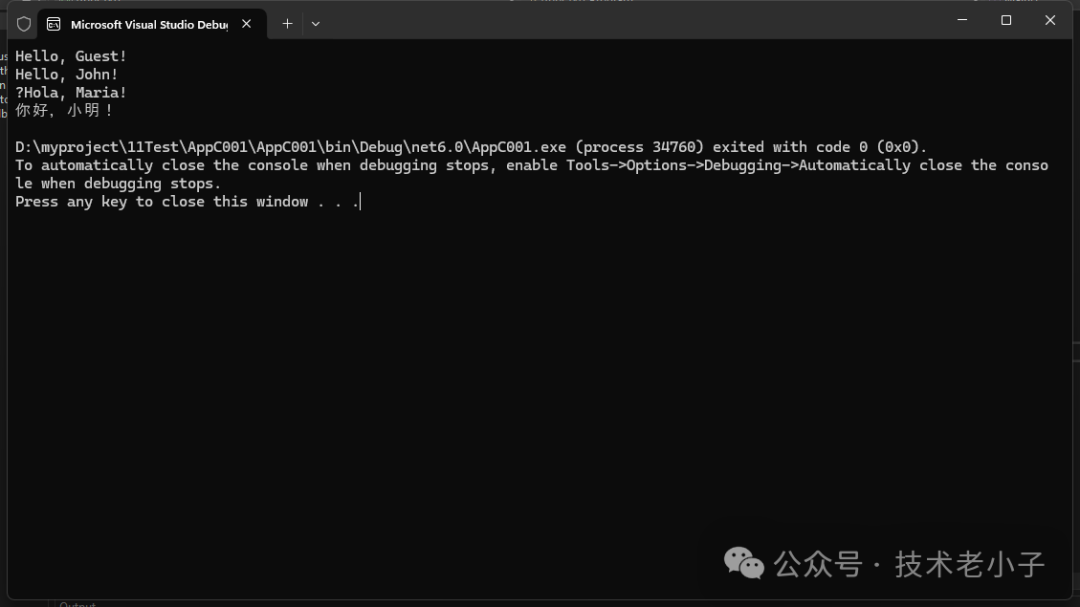 greeter.SayHello(language: "Chinese", name: "小明"); // 输出: 你好,小明!