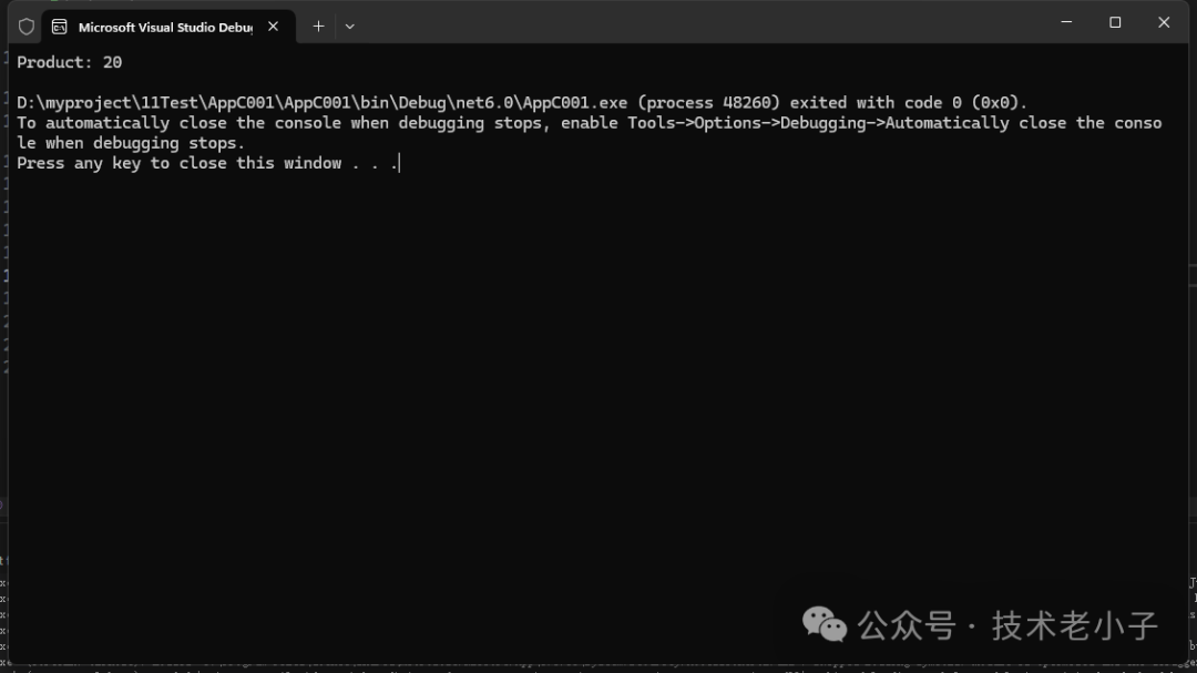 Console.WriteLine($"Product: {product}"); // 输出: Product: 20