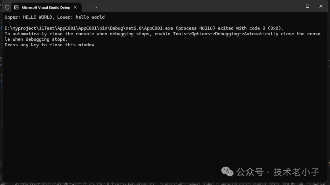 Console.WriteLine($"Upper: {upper}, Lower: {lower}"); // 输出: Upper: HELLO WORLD, Lower: hello world