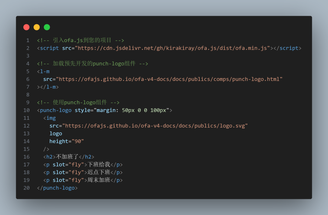 最近,又看到了一个新的前端框架,它的名字叫做 ofa.js,其实我更觉得它就是一个库,有点类似于 Jquery,因为它不需要打包,不依赖于 nodejs/npm/webpack/vite,号称是只需要引入一个js文件,就可以像 React/Vue/Angular 那样开发