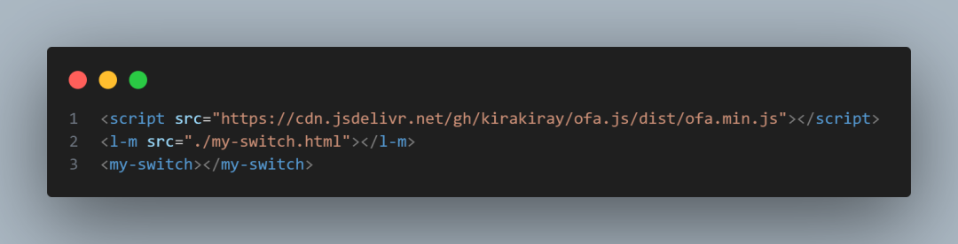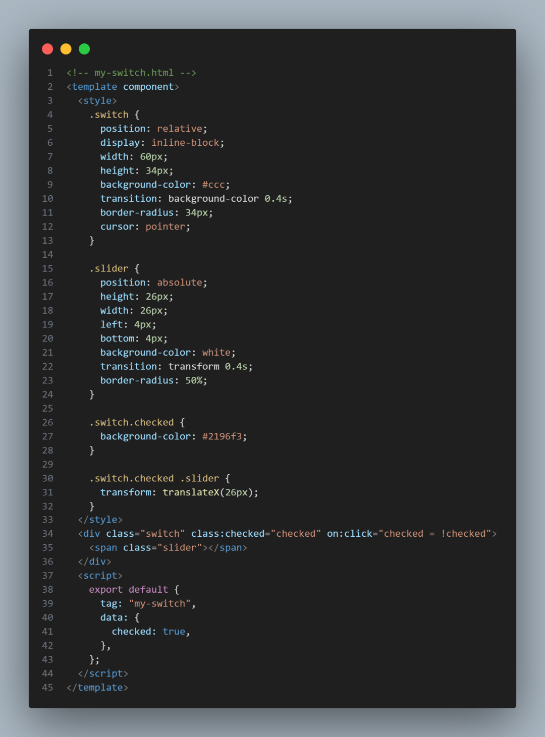 当然,你也可以在使用 ofa.js 开发前端页面时,自己封装组件,就比如官网上的一个小案例,封装一个 Switch开关 组件