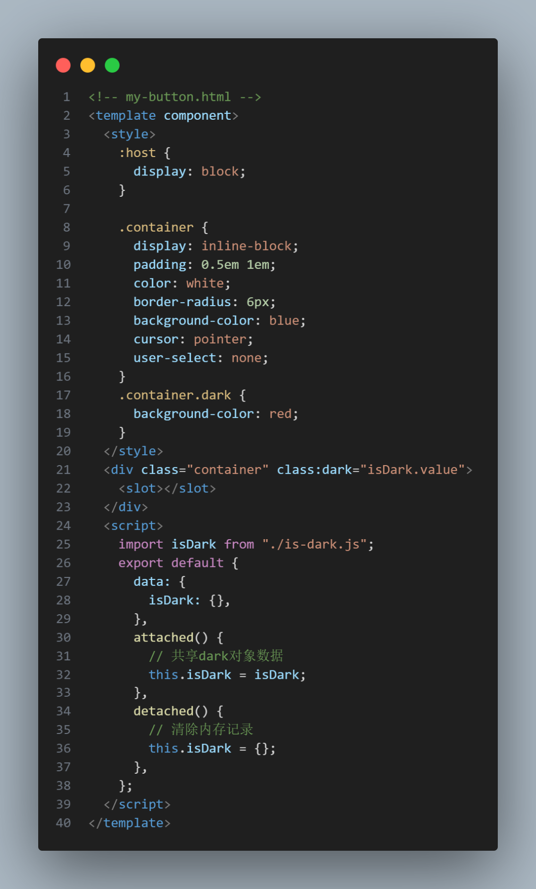 ofa.js 也支持数据状态管理,以下是一个共享黑夜模式的按钮示例: