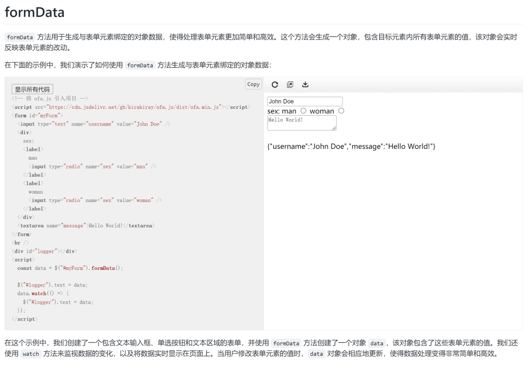 表单案例:https://ofajs.com/cn/api/others/form-data.html