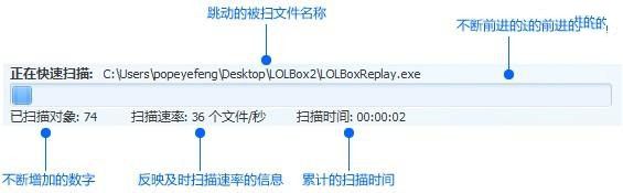 等待的过程应有足够的反馈 忙碌的维护秩序的工作人员、时而往前移动的队伍以及后面不断增多的等待同学等信息都给了我们足够的反馈,说明距离领到利是的目标越来越近了且排队等待是合理的。 想象一下,如果当进度条出现后,所有信息都是静止的:进度条没有移动、没有当前扫描进度的指示、没有变化的数字,这种等待让用户瞬间产生焦虑和不安,他们会疑惑“到底什么时候才会扫描完成?”、“到底电脑是否在正常工作呢?”。在做进度条优化设计时,就大量的提供了变化的信息,给出足够的反馈,让用户明白电脑是正常的,他们的等待是合理的。