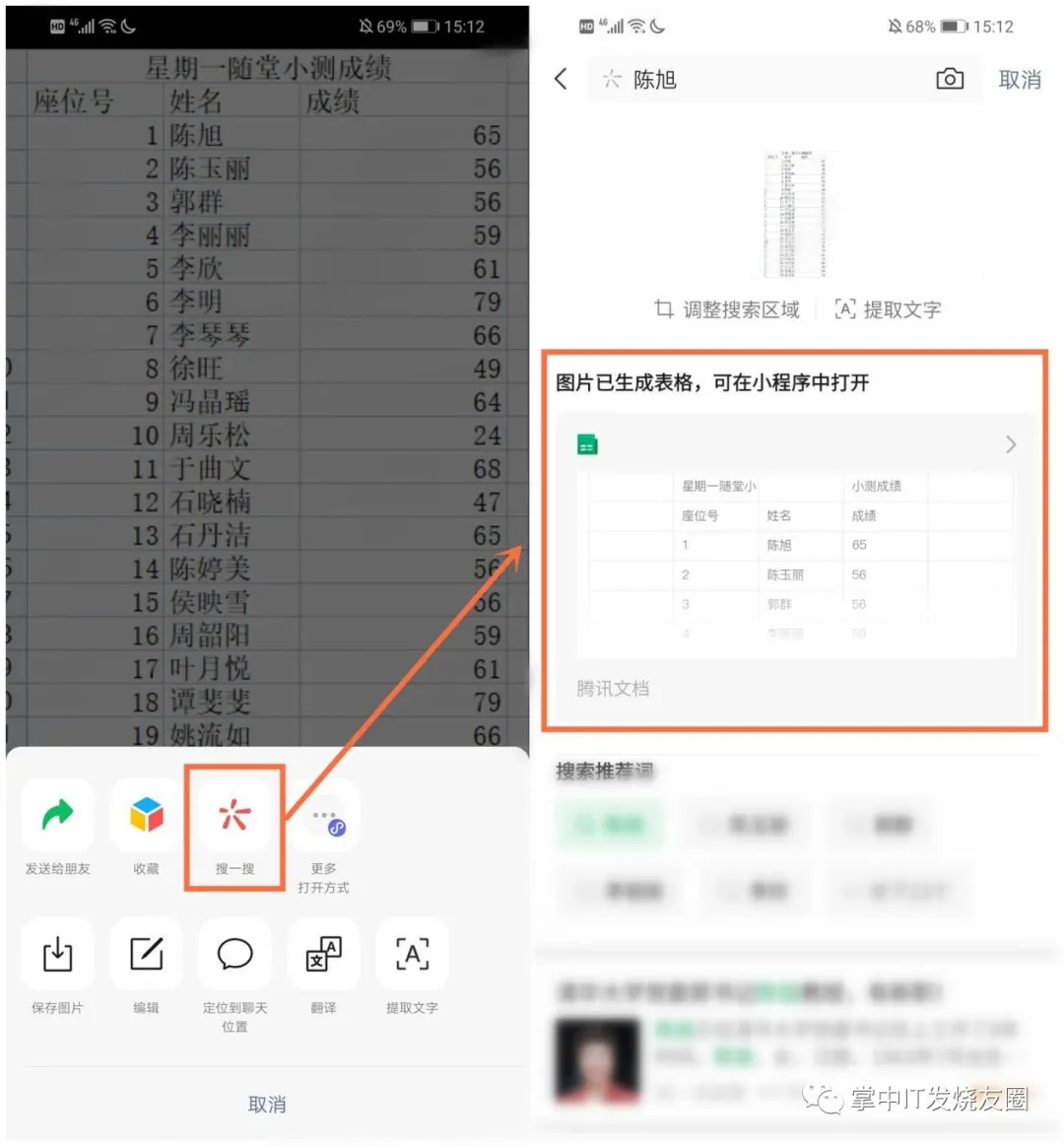 微信的【搜一搜】可以提取图片文字,并且转成Excel,所以我们需要将PDF文件截图,如果表格里含有图片,只能在转换成Excel之后自行添加哦。