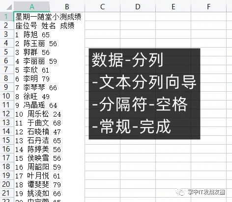 02. 这个时候所有文字都在一个窗格里,不用担心,接下来我们选中整个窗格,然后点击【数据】,选择【分列】,在【文本分列向导】对话框里,点击【分隔符号】,选择【空格】,点击【常规】,然后选【完成】。