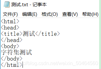 此时的文档编码为:ANSI,可以使用记事本重新打开该html文件--》文件--》另存为: