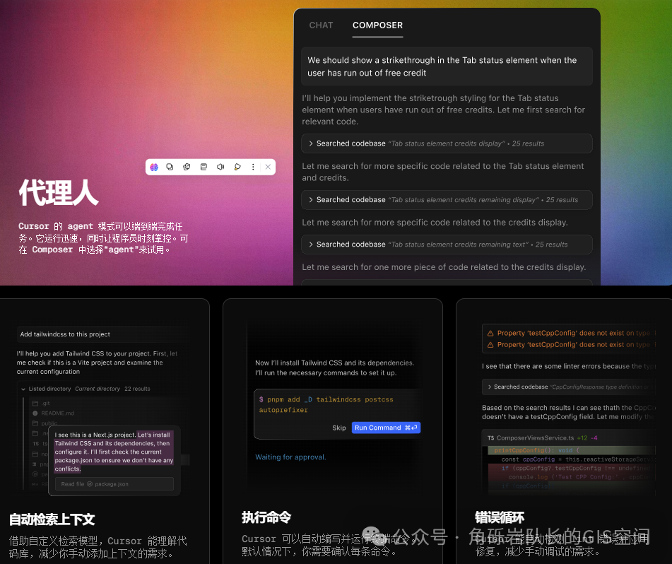 Cursor 的 agent 模式可以端到端完成任务,实现快速开发。