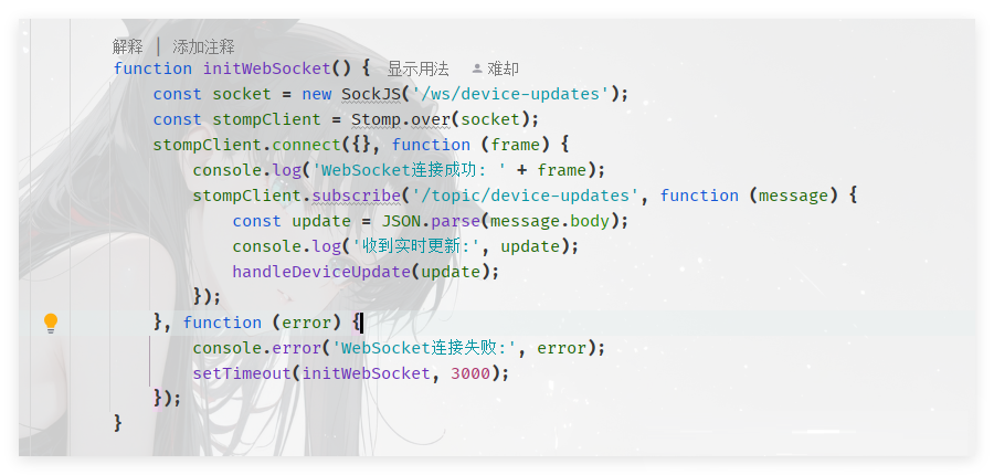 注解式的实现是我们常用的websocket实现,只需要使用@ServerEndpoint注解标记类为websocket的服务端点,客户端就可以使用ws://地址:端口/端点进行连接。下面是简单的实现