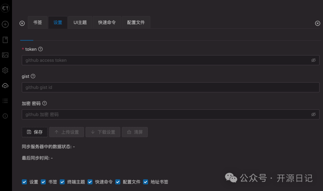 书签、主题等自定义配置可以同步到 GitHub 或 Gitee 的私有 Gist,一键换电脑不用再担心重配问题。