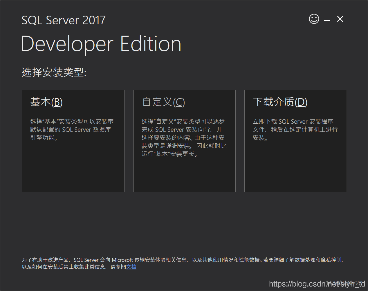 1.官网下载SQL Server 2017 Developer          https://www.microsoft.com/zh-cn/sql-server/sql-server-downloads