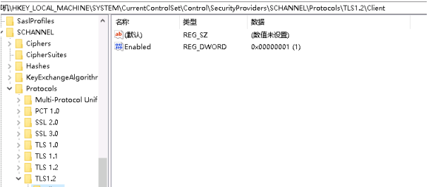 路径:HKEY_LOCAL_MACHINE\SYSTEM\CurrentControlSet\Control\SecurityProviders\SCHANNEL\Protocols