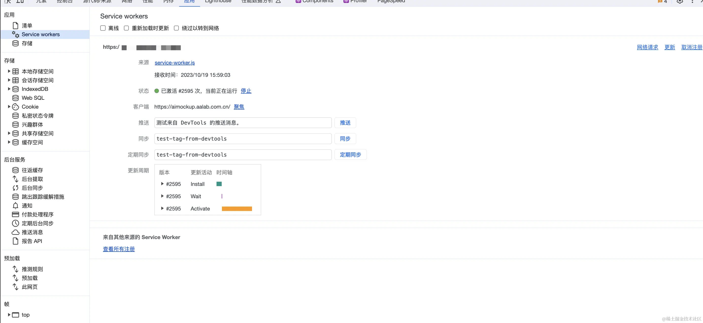 service worker实际上提供的是本地缓存服务,所以和我们平时查看localStorage差不多,打开谷歌浏览