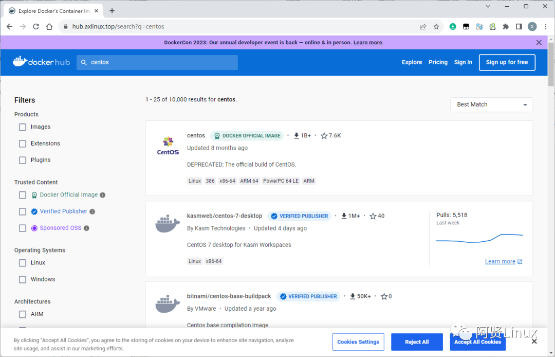 前文《docker镜像仓库hub.docker.com无法访问》中很多小伙伴反馈不会使用魔法,而且想使用官方docker镜像仓库搜索镜像,今天它来了!