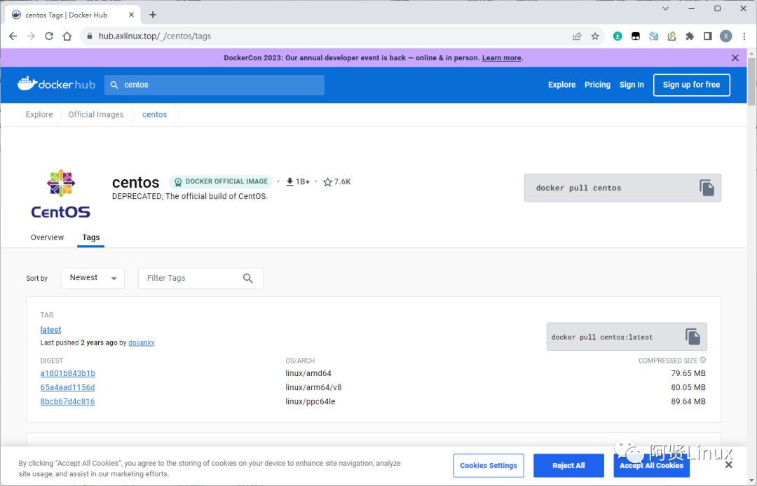 话不多说,直接上dockerhub个人镜像站点(每天限制10w访问,只要不被封,一直免费提供访问