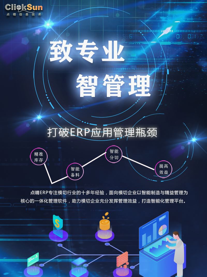 随着市场竞争加剧、原材料成本上涨、客户需求多样化,传统管理方式已难以适应现代制造业的复杂要求。点晴模切ERP系统http://moqie.clicksun.cn的出现,正引领着一场从经验驱动数据驱动的工厂管理思维革命。