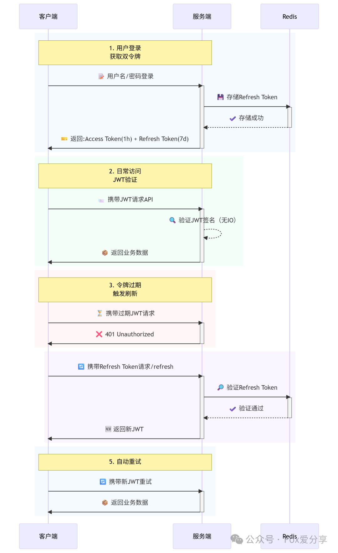 - 并发问题如果用户同时发了多个请求,可能会瞬间收到好几个新Token,客户端会感到困惑:“我到底该用哪一个?”