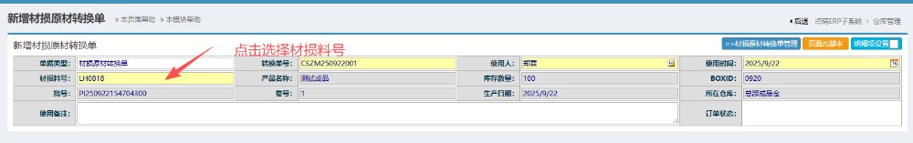 :点晴ERP-BOE材损原材转换流程