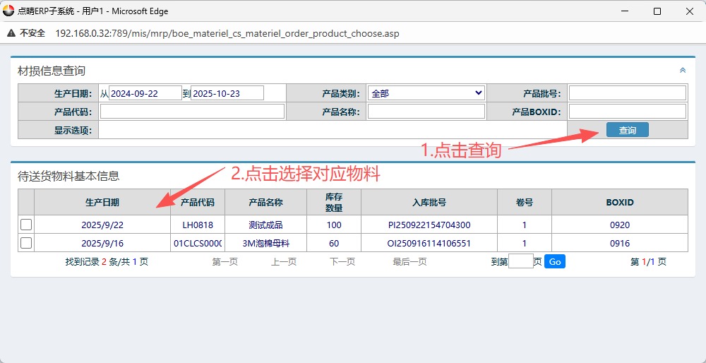 点晴ERP-BOE成品送货单流程