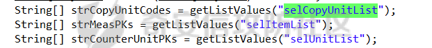 String[] strCopyUnitCodes = getListValues("selCopyUnitList");