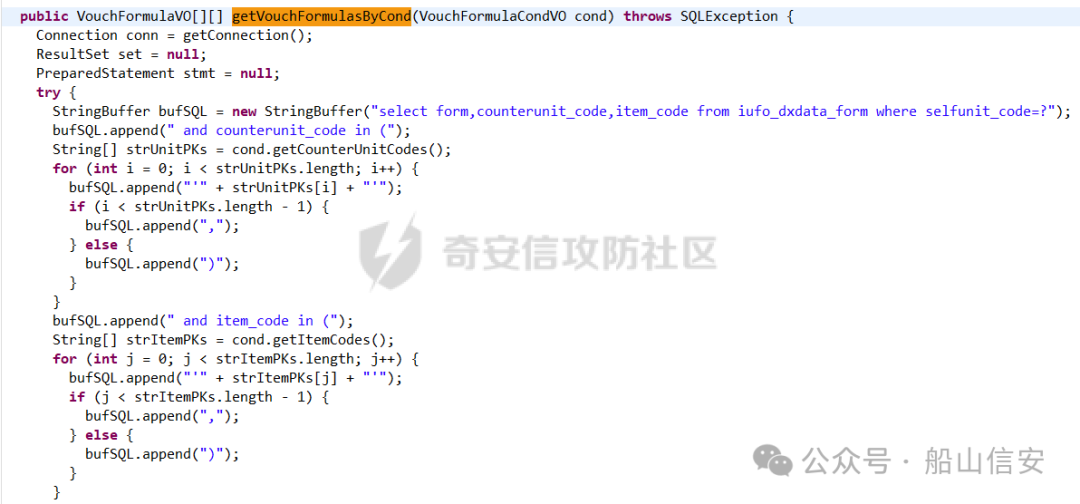 可以反向定位一下,这些传参进了哪些方法当中,可以看到VouchFormulaCondVO中保存了上面的传参,再作为cond传入了getVouchFormulasByCond方法之中