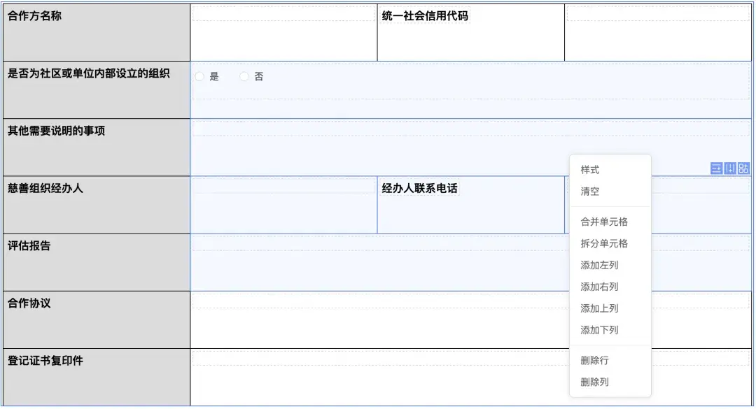 • 增强表格布局组件,支持批量操作格子样式,清空,合并等操作,双击快速添加内容,支持通过拖动设置格子宽和高