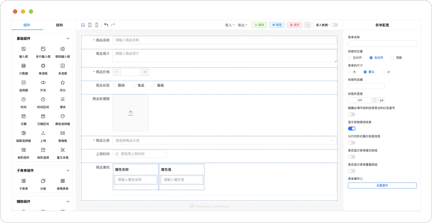 在表单设计器中,可以通过以下方法获取表单的生成规则和配置,这些数据通常会被保存到数据库中,以便后续加载和回显。