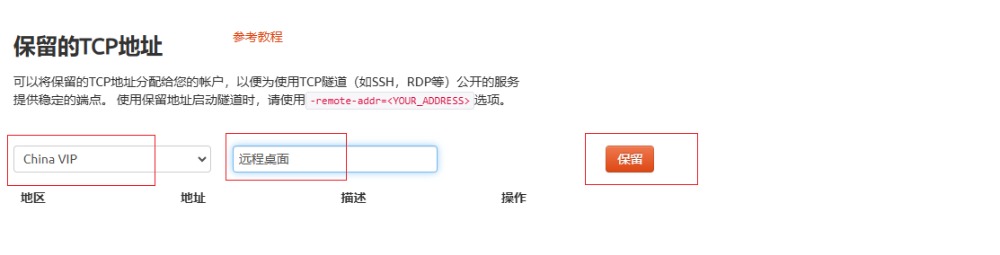 登录Cpolar官网,点击左侧的预留,找到保留的tcp地址,我们来为远程桌面连接保留一个固定的地址: