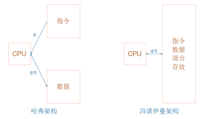 CPU架构可以分为哈弗架构与冯诺伊曼架构。