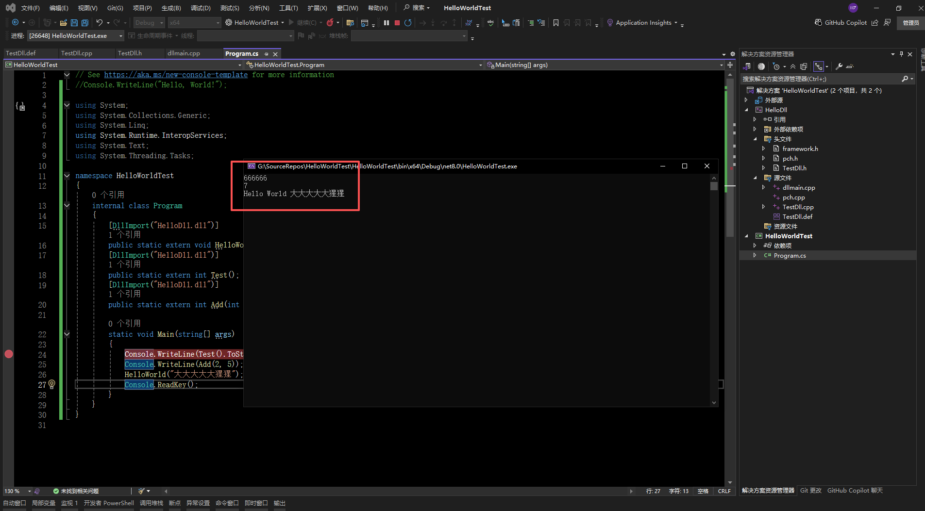 三、C#项目HelloWorldTest下 添加代码
