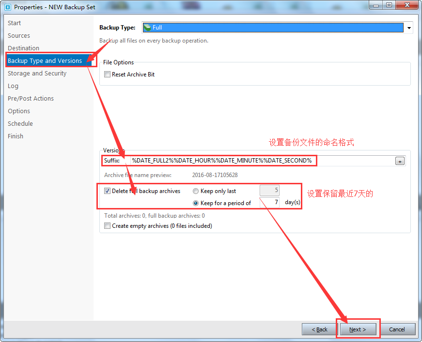 下面介绍压缩包备份方式下的设置方法: